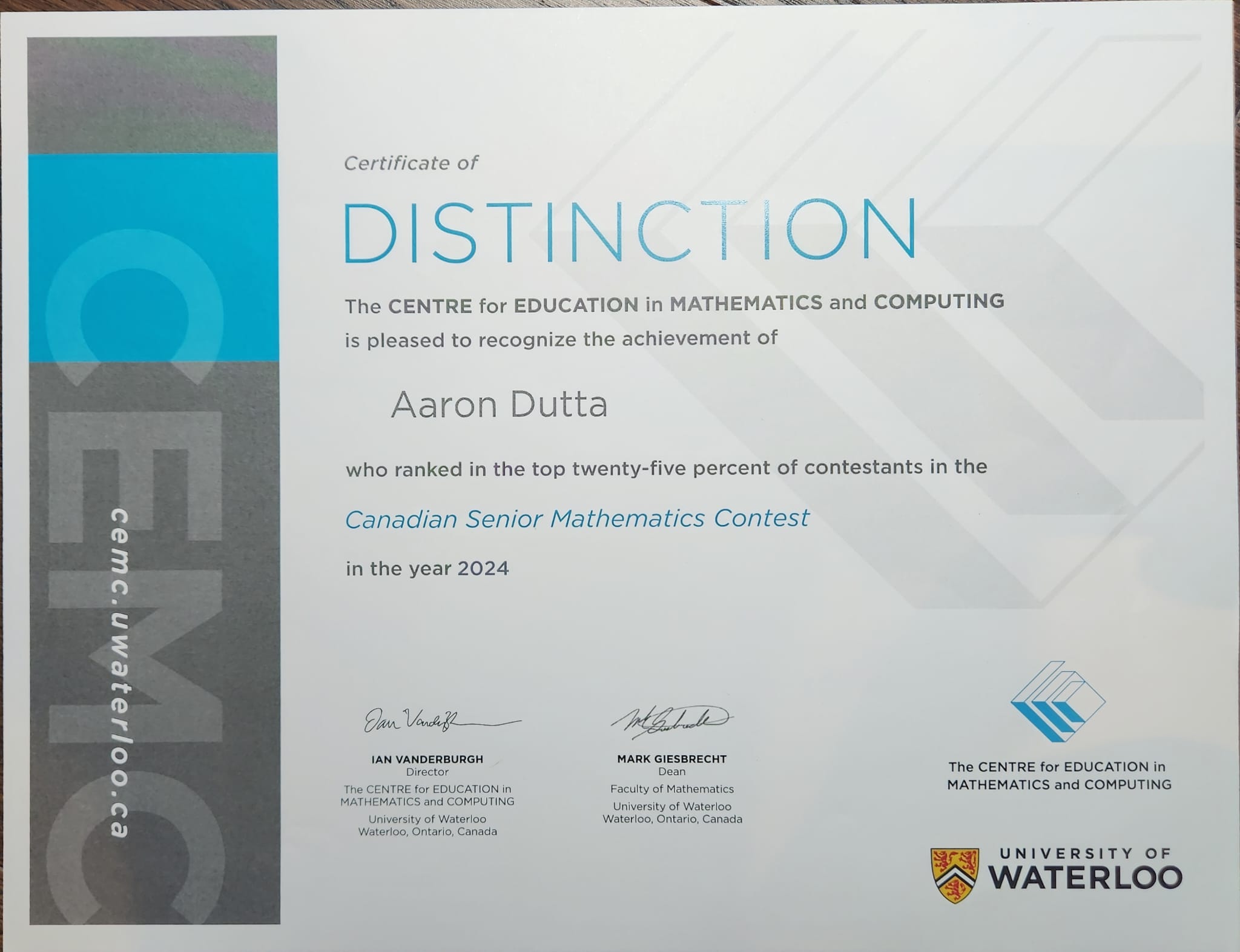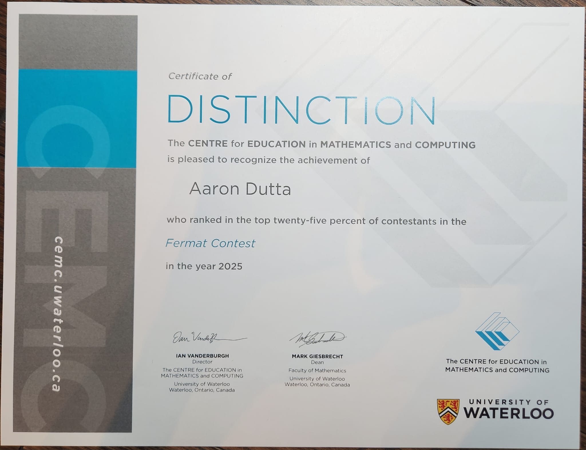 2025 Fermat - National Honour Roll and Certificate of Distinction