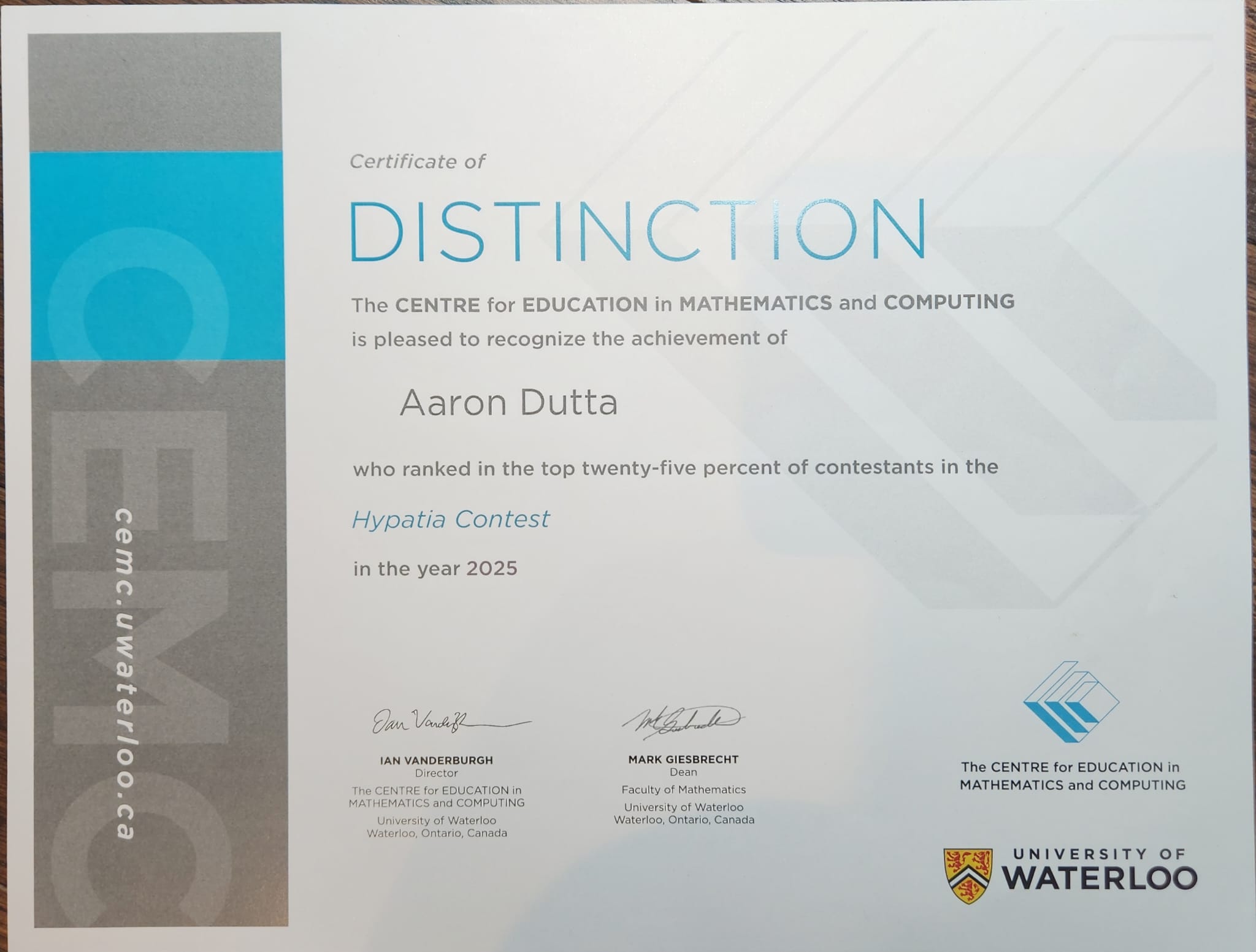 2025 Hypatia - National Honour Roll and Certificate of Distinction